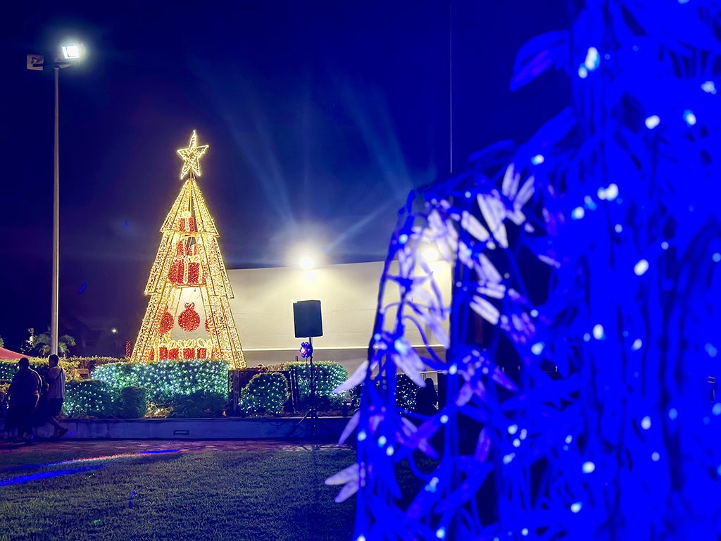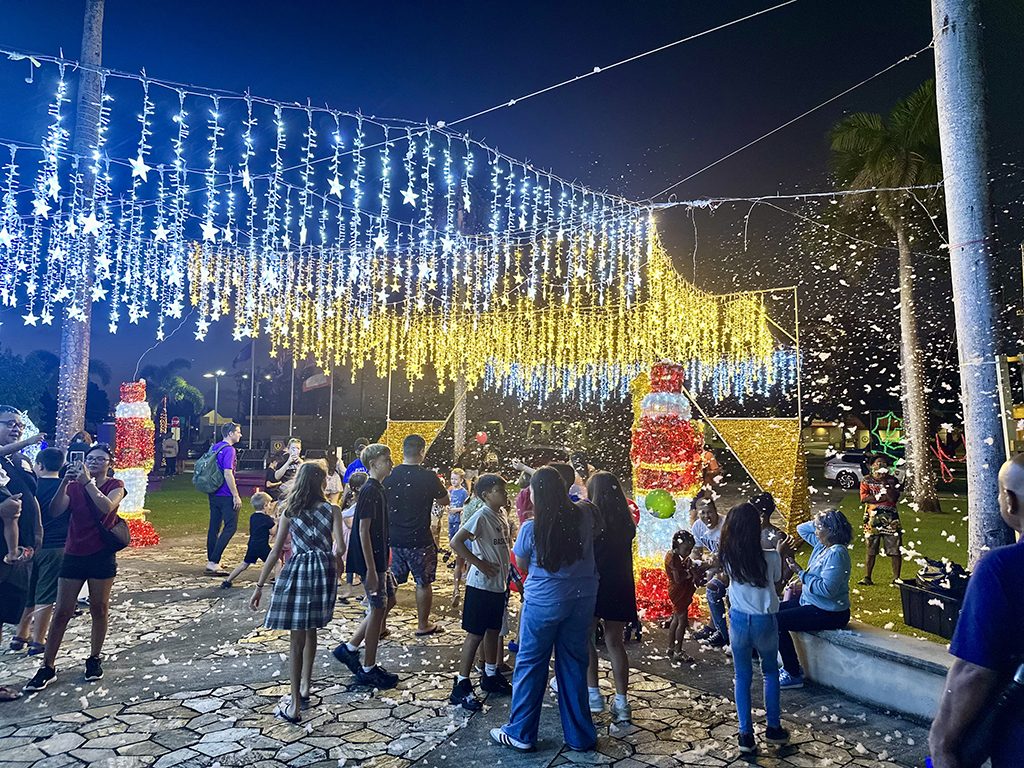 12月1日(日)午後6時、すでにスキナープラザには多くの家族連れや若者たちでいっぱい。そしていよいよ6時15分頃、グアム準州知事の挨拶などが終わり、スキナープラザは来場者の歓声とともに美しいクリスマスの光に満たされました。