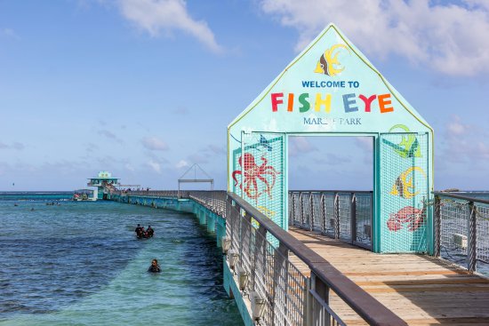 フィッシュアイパークルックアウトタワーの横にあるシーウォークまで歩いていき、ステージで多くの人がダイビングしているのを見てください。