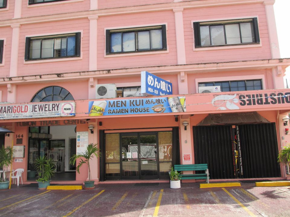 人気のパンチングスポットTUMON TRADE CENTERの1階にあるメンクイラーメンハウスは、ピンクの建物全体がよく目立つのですぐ見えます。