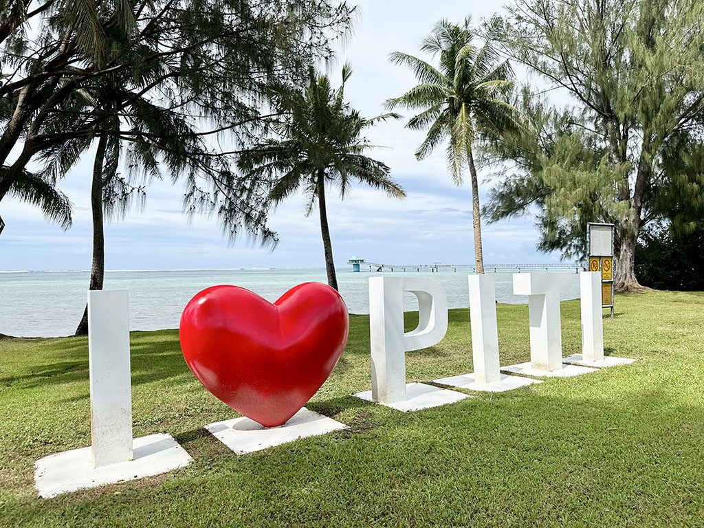 グアムに来てタモンの街を歩いたりビーチで遊んでいると、大きな赤いハートマークを伴った “I ♡ XX” という大きなオブジェがあることに気づくでしょう。これはグアム政府が行っているプロジェクトでグアムの島中で見ることができます。