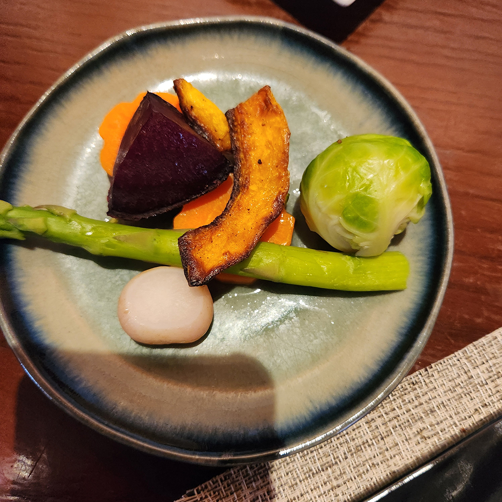 각종 채소에 와사비 버터 소스를 곁들여 나와요.