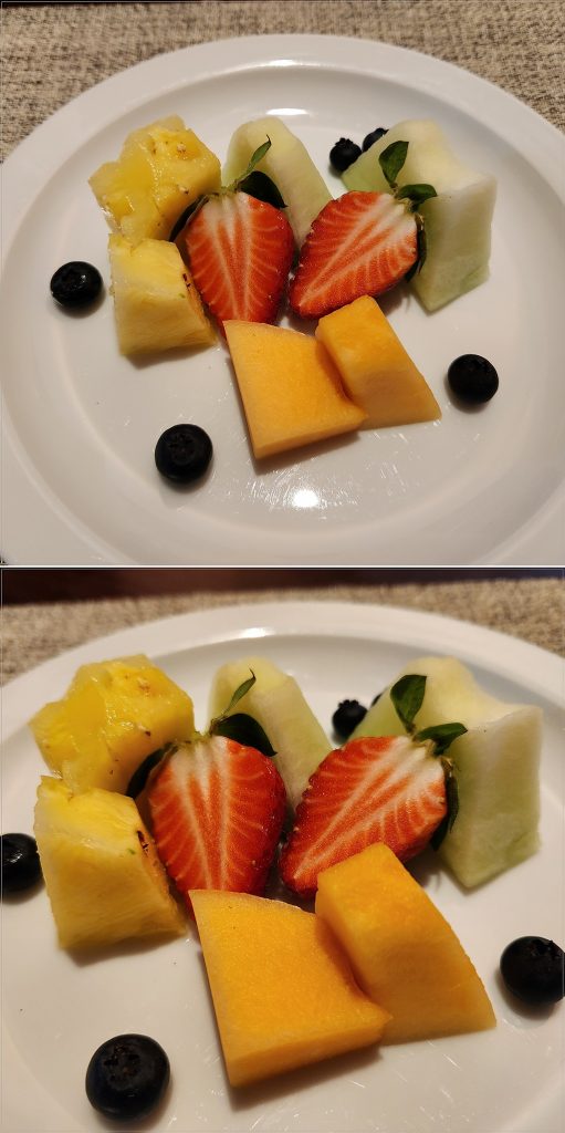 과일은 신선하고 맛있었어요.