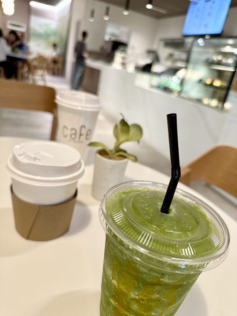 這裡提供各種咖啡和茶,另外還有健康的果昔推薦。上圖是「綠色能量」(Green Glow,12oz $8.00),它含有大量的生菜、羽衣甘藍、青江菜和菠菜,果汁以蘋果汁為基底,口感順滑,而且加了芒果糖漿,口感更加清新。