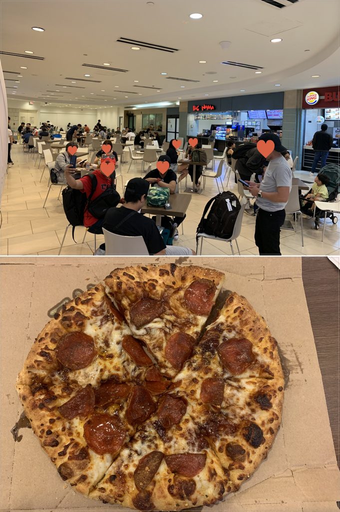 我點的是Domino’s比薩的最小尺寸。這個尺寸對兩個人來說剛剛好,包含飲料總共花費13.49美元。美食廣場內也有吸煙室。