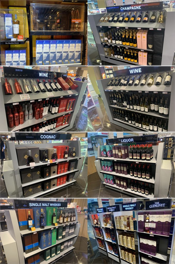 接下來介紹一下樂天免稅店。這是酒類區。最受歡迎的是皇家禮炮和約翰尼‧沃克系列。