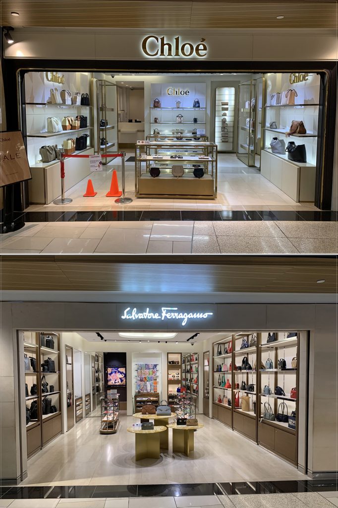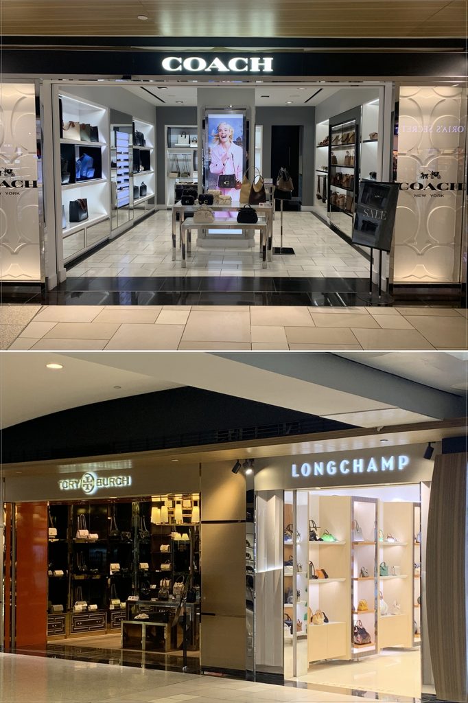 這裡有Loewe、Tumi、Chloé、Ferragamo、Burberry、Gucci、Coach、Tory Burch、Longchamp等品牌精品店。還有Victoria’s Secret的專賣店。