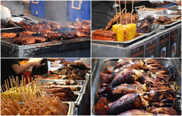 夜市主要販賣當地小吃及傳統手工藝品,小吃部分當然還是以他們最愛的BBQ燒烤為大宗,但各家風味都不相同,且以各種搭配方式呈現,通常一份常以幾樣配菜加上關島紅米飯或者炒麵裝在便當盒給你,分量通常都不會太少,只要$6~$8元美金,食量不大的可以兩人吃一份了!再搭配當地特產Tuba飲料,是以椰子原汁發酵而成,喝起來像是某種醋飲,爽口解膩還可幫助消化。