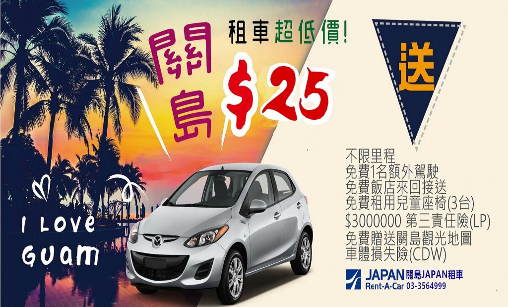 喜歡自由行的我們,這次事先在台灣預約了JAPAN租車,過程中他們的中文預約中心很熱心的為我們說明可以從關島機場接我們到他們的杜夢營業所辦理租車,或者選擇直接24小時機場櫃檯取還車,可惜我們事先已有跟旅行社購買機場到飯店的接駁,不然還真的很方便。