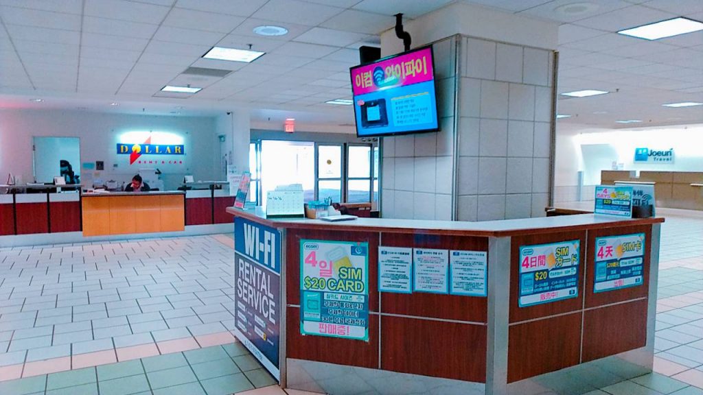 一入境就看到右手邊顯眼的櫃檯,還有我們事先做好功課要來租的Wi-Fi機。
