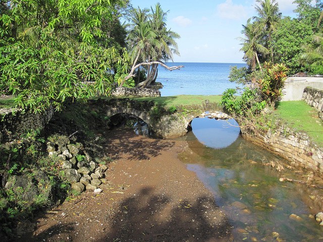 西班牙古橋建於西元1785年,屬西班牙式的雙拱橋,是當時西班牙統治時期,貿易興盛的猶馬特克(Umatac)與亞加特(Agat)之間重要的橋樑,起初是木製的,後來在西元1800年改用石灰岩建造而成現在所看到的樣子。